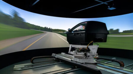 The HRC simulator features a modified Indy car cockpit and can rotate a full 360° in yaw. The driver benefits from a 270° view on a screen that is 2.5m high and 9m in diameter, for a realistic on-track visual experience.