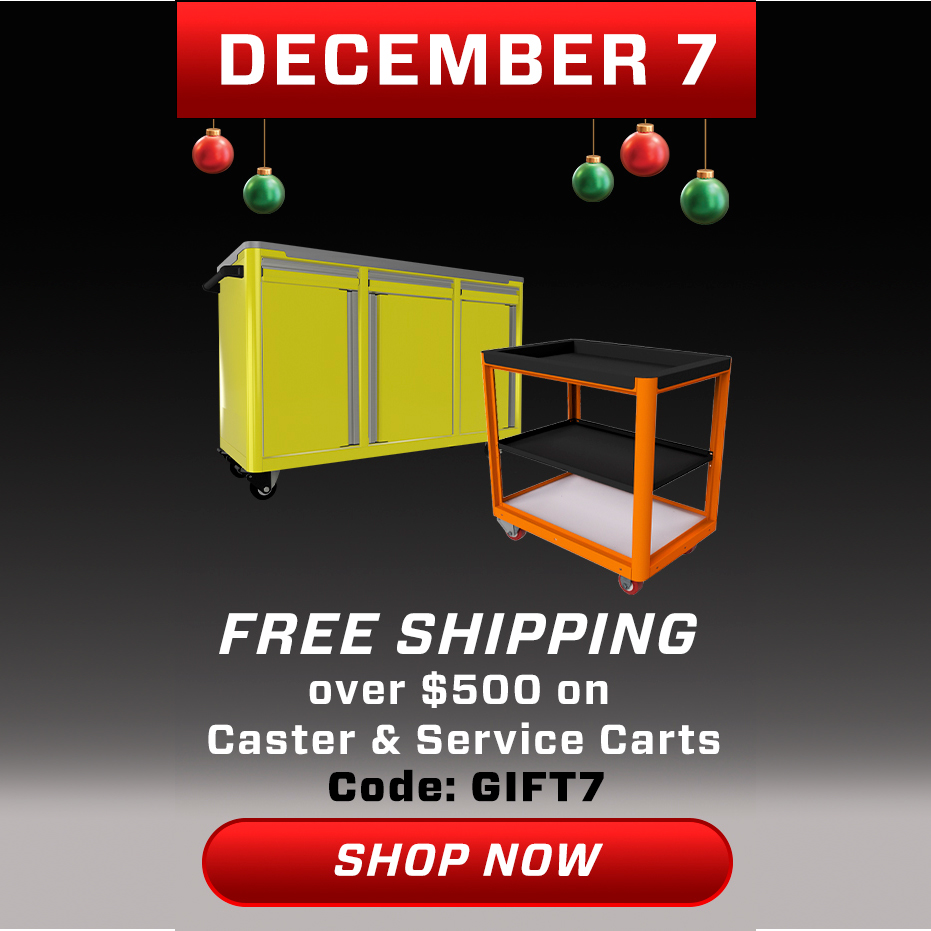 You've found today's exclusive deal! For one day only take advantage of FREE SHIPPING on Caster Cart and Service Cart orders over $500 . That includes custom caster carts! Offer valid December 7, 2025 . Order totals calculated before tax and shipping. Customer must add products to their shopping cart and then enter the code GIFT7 at time of check-out to receive offer. Terms and conditions apply.