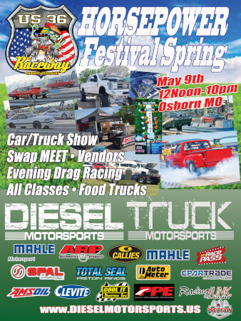 10th Year back at US 36 Dragway on May 9th! Call or PM if you want to a part of the event! All drag classes plus 2 truck diesel only classes! Plus car/truck show!
