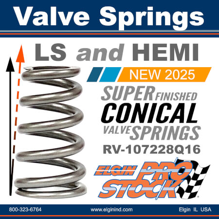 Elgin's new super finished valve springs are designed for high mileage and performance. Use in either LS or Hemi with the matching retainers. Elgin offers a full line of valve springs from OE replacement through high performance.